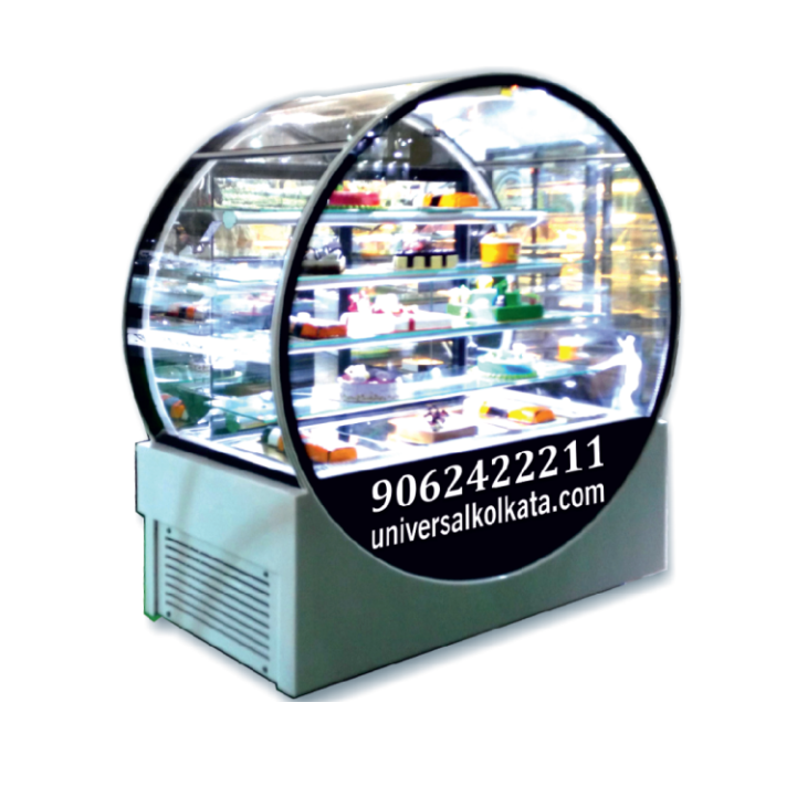 The Straight Glass Central Round Circle Display Counter combines modern design with practical functionality, making it an ideal choice for showcasing sweets, pastries, and snacks. Featuring a sleek round central display with clear straight glass panels, it offers 360-degree visibility, attracting customers from all directions. Constructed with high-quality stainless steel and tempered glass, it ensures durability, hygiene, and ease of cleaning. The spacious circular layout allows elegant product arrangement while maintaining freshness with efficient cooling options. Perfect for bakeries, sweet shops, and cafes, this display counter enhances product presentation, elevates customer experience, and boosts sales through its eye-catching design.